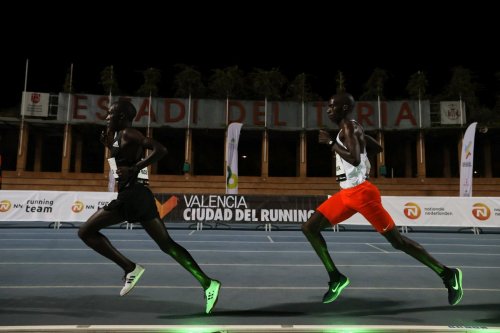 Joshua Cheptegai behind Nicholas Kemeli, photo by NN running team