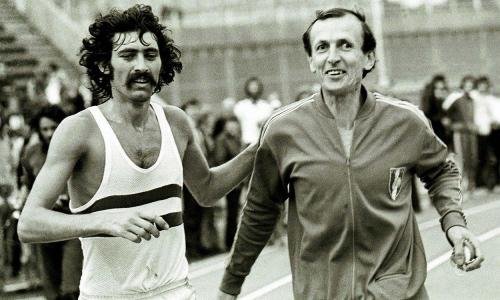 The glory days, David Bedford with Coach Bob Parker, photo courtesy of runblogrun.com.