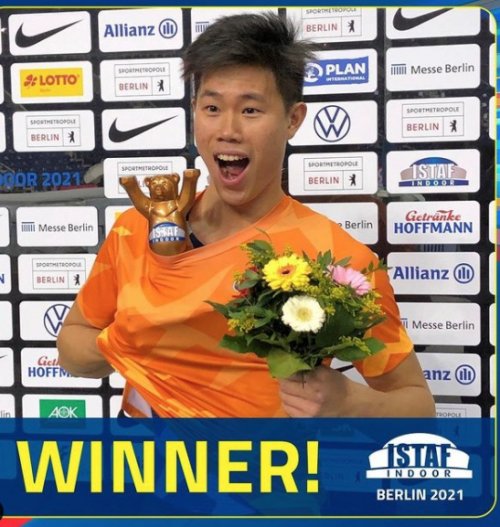 Ernest Obiena (Philippines) won the men’s pole vault from Torben Blech – both on 5.80. For Obiena, that was a new PR and nation record, improving from 5.62. He commented: “I do not really know how this was possible. Now I am seeing some kind of light in the tunnel and I am happy with the 5.80m jump. The attempt at 5.80m felt easy, I did not want to move up with poles. I had this issue mentally. This is why competing with Torben is always nice. It felt easy. If I had had another one, I know I could have made the 5.87m. It is ISTAFBerlin! Growing up I watched this on YouTube. Now that I have the Bear Trophy, it is nice. Cloud Nine!”