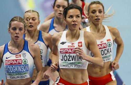 Favorite Keely Hodgkinson became the youngest European women’s 800m champion in history at 19 years four days with 2:03.88. Joanna Jozwik was second with 2:04.00 and Angelika Cichocka took bronze with 2:04.15 as Poles took four of the four-lap medals.