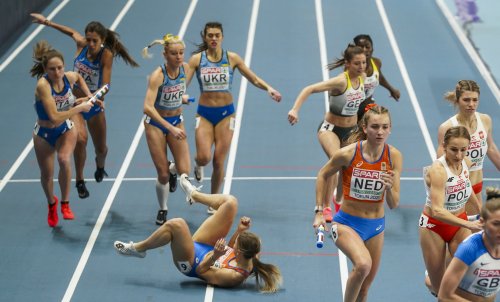 The Dutch women made it a double, thanks to Femke Bol bringing them home with 49.99 to a European lead and champs record of 3:27.15. She had to overtake Britain (3:28.20) on her leg as Poland took bronze without Swiety-Ersetic in 3:29.94.
