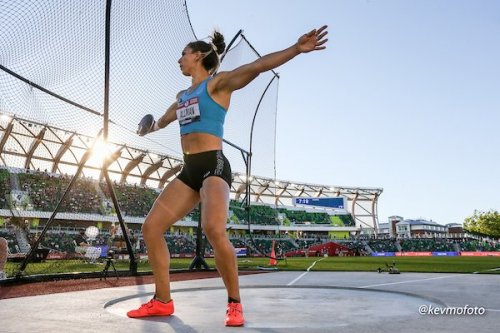 Valarie Allman, dominating the discus, June 19, 2021, photo by Kevmofoto/Kevin Morris