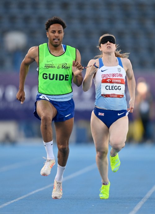 Libby Clegg running with a guide, photo by IPC