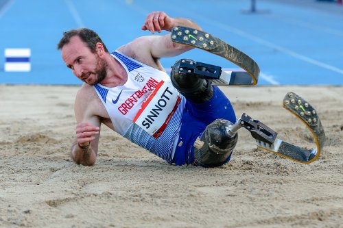 British Soldier Luke Sinnott lost his legs to an IED in Afghanistan. Now he is a long jumper, photo by IPC