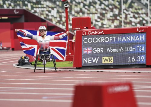 Hannah Cockcoft won the 100m wheelchair race in the T34 class at the Tokyo Paralympics in a time of 16.39.