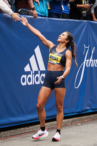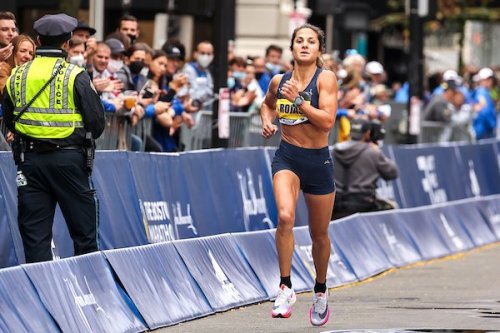 Nell Rojas (looks like no sponsor) was top American women at Boston in 2021, finished 6th, photo by Kevin Morris / @kevmofoto