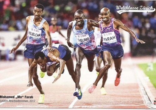 Mo Farah battles in his last 5000m in 2017, Weltklasse, photo courtesy of Weltklasse Zurich
