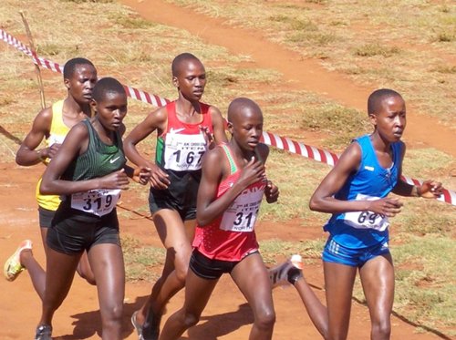 1. Junior women’s 6km leading pack, photo by Justin Lagat