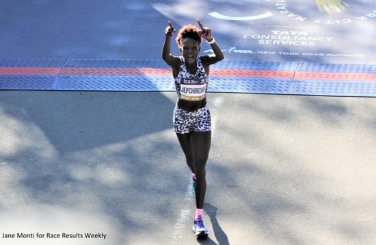 Peres Jepchirchir after winning the 2021 TCS New York City Marathon (photo by Jane Monti for Race Results Weekly), used with permission.