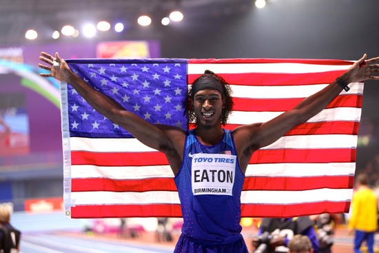 Jarret Eaton, Hanging with Sam Kendricks, 2018 WIC Birmingham, photo by Mike Deering / The Shoe Addicts