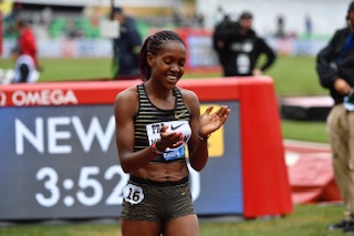 Faith Kipyegon of Kenya after winning the 1500m at the 2022 Prefontaine Classic in a meeting record 3:42.60 (photo credit: Diamond League AG)