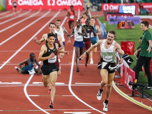 “That race felt like 9600 meters of a fartlek and a flat-out 400,” said Fisher. He continued: “I tied up a little those last ten steps. It felt like my legs were bricks.”