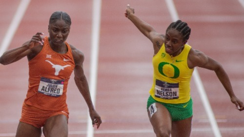 The lyrics fit Alfred perfectly as she came onto the national scene by beating Oregon’s Kemba Nelson in a 100-meter photo finish to win her first individual NCAA title.