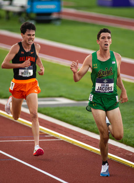 Notre Dame’s Dylan Jacobs took a close in over Alex Maier in the NCAA Div 1 10,000m champ! photo by Cierra Hitner