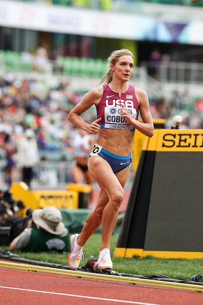 About a month ago, Coburn ran away from the field, including 2020 Olympic silver medalist Courtney Frerichs (who finished 6that the world championships), for her tenth 3,000m steeplechase U.S. National title with a time of 9:10.63. There was a feeling that she was going to produce something special in the world.