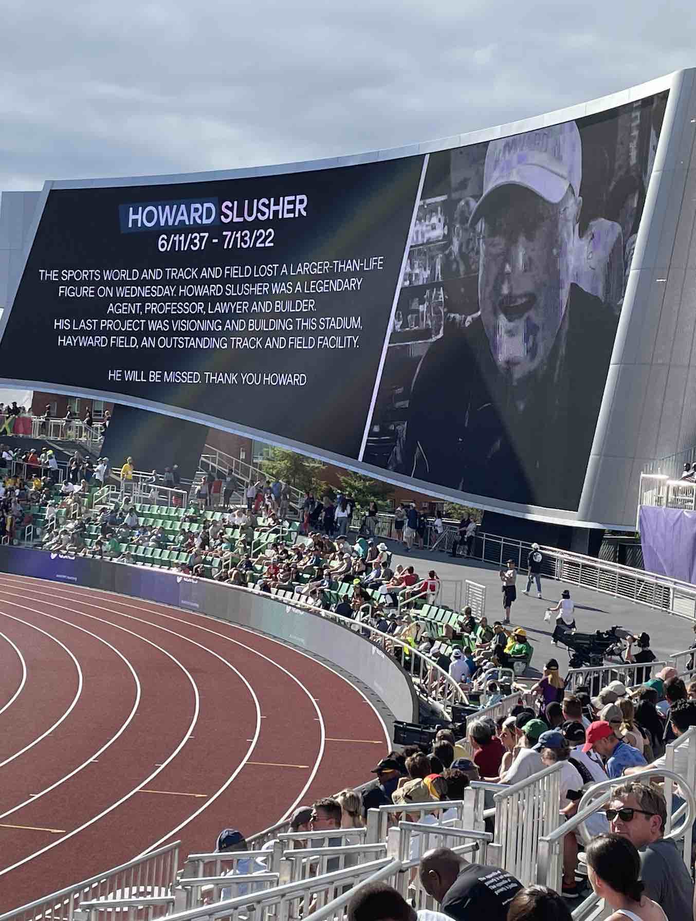 I know one thing. The stadium that 21,000 people enjoyed daily during the 2022 World Athletics Championships in Eugene, Oregon, would have made Howard Slusher smile. Phil Knight had entrusted Mr. Slusher with the building of the stadium, and when I wrote about that (June 2, 2018):
