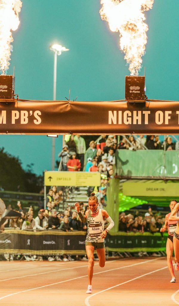 Mezem Adane wins 10,000m at Night of 10,000m PBs, photo from Night of 10,000m PBs FB