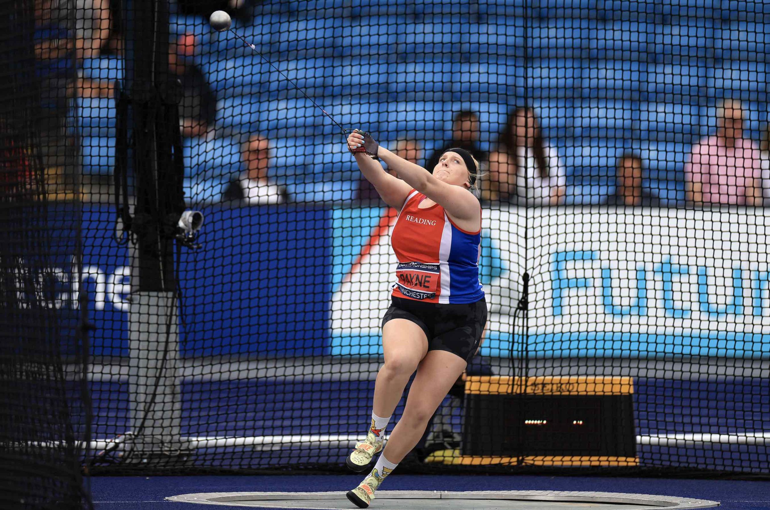 Charlotte Payne, defending champion, hammer throw, photo by Getty Images for British Athletics