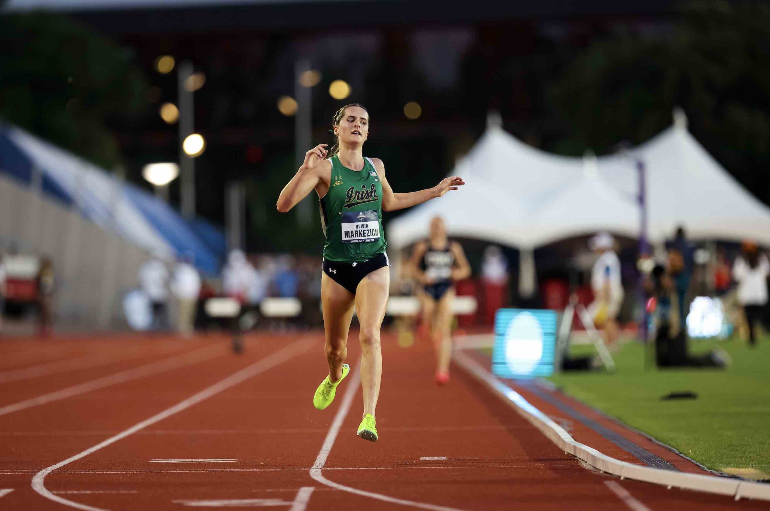 The picture above is of Olivia Markeczich, who took the steeplechase title at the NCAA Division I Champs for her uni, Notre Dame. Olivia just was the guest on our podcast, #SocialingtheDistance. Olivia will be running her fifth season with her twin, Andrea, who just transferred from Washington. Olivia ran a 10-second PB at NCAA of 9:25.03. At the USATF Champs, Olivia took 4th in 9:17.93, another PB.