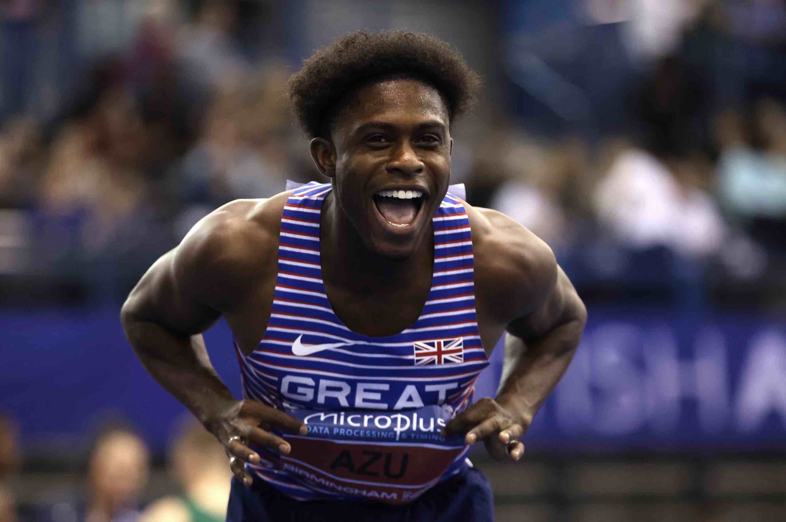 Think Jeremy Azu is happy winning the British title at 60 meters? photo by Getty Images for British Athletics