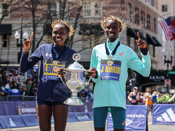 John Korir and Sharon Lokedi caused the Kenyan national anthem to be played twice on April 21st at the 129th Boston Marathon when they took home the men’s and women’s titles, respectively, in exciting finishes.