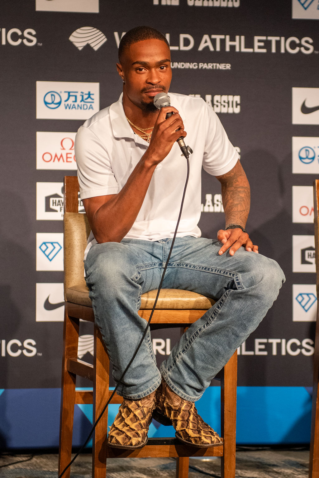 The first presser on Day 1 was the Men’s Sprints. It featured Christian Coleman, Quincy Hall and Matthew Hudson-Smith.