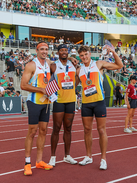 Heath Baldwin, Kyle Garland, Harrison Williams, U.S. dec team for Tokyo, USATF Outdoor Track & Field Championships Eugene, Oregon, USA July 31 – August 3, 2025, photo by Kevin Morris