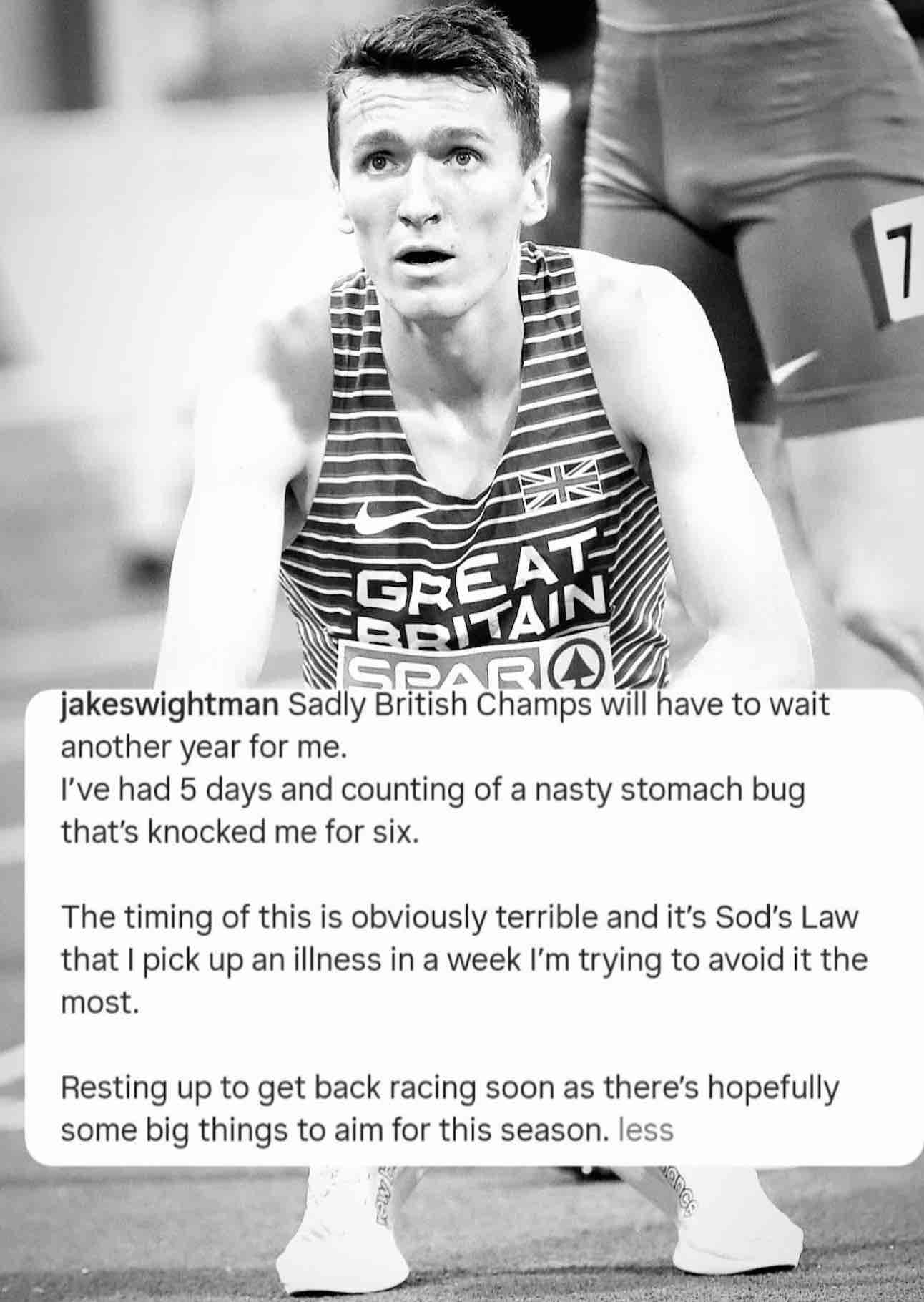 Josh Kerr, with a wild card to Tokyo as the reigning champion, chose to run the 5000 meters at the GB trials, winning comfortably. George Mills was tripped in the London Meeting last month and had not recovered sufficiently to be ready to run. Jake Wightman ran well in London, then announced that he had a “nasty stomach bug which has knocked me for six”. Then there were two.