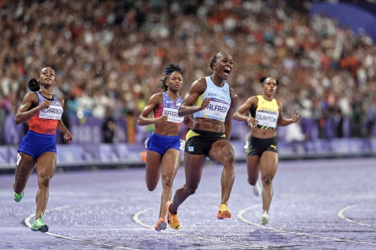 Representing her country is always high in her thoughts. She spoke to me about leaving Paris “with two medals, the first Olympic medal for my country”. The realisation of what she had achieved came gradually: “There were several moments when that hit me and you would probably have seen me crying at those moments. That’s when I realised, like what had happened and how my life was about to change and just realizing it was a dream come true, when I crossed that line. And then when I got to the area when I got my clothes back and realising that I had literally just won the Olympics, the 100 meters. But too that my dad is not here to see it. [He had died when she was young]. So every time you saw me getting emotional was a moment that I realised like: ‘wow, I’m really the champion’”.