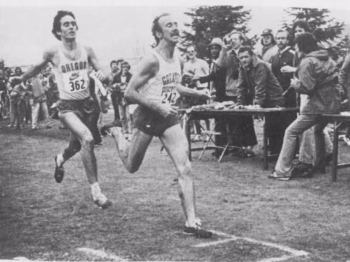 1978—After an early mis-direction by a race official at the U.S. X-Country Championships in Seattle, leaders Greg Meyer and Alberto Salazar, unsure of how much distance was left in the race, were content to run together at a moderate pace. That all changed when they spotted the finish line only 200 yards away. At first, they contemplated trying to finish in a tie, but then Salazar said to Meyer, “We better sprint. One-two-three, go”! And so, the 10,000-meter race turned into a 50-yard dash, with Meyer (29:36) earning the title by a stride over Salazar (29:37), who had won the NCAA title 5 days earlier.