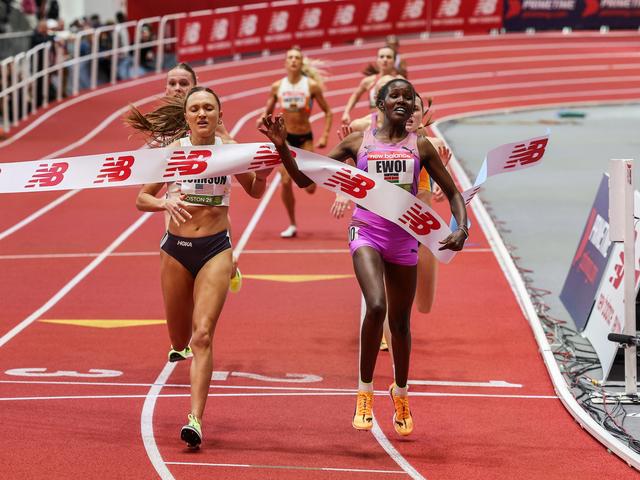 Dorcus Ewoi battles Sinclaire Johnson, New Balance Indoor Grand Prix
