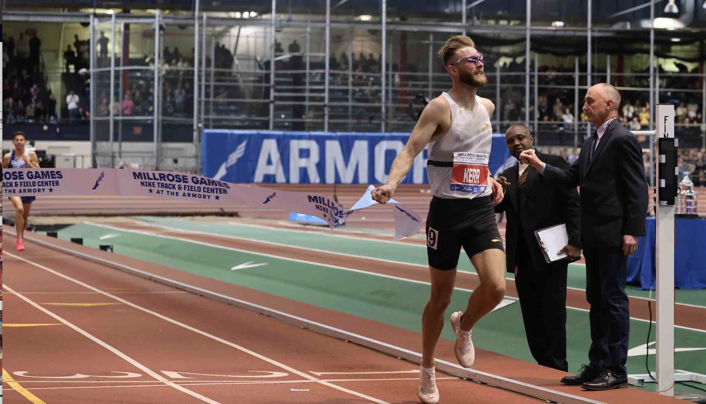 NEW YORK (30-Jan) — Nearly two years ago Scotsman Josh Kerr came to the Millrose Games at the Nike Track & Field Center at the Armory in Upper Manhattan and came oh-so-close to breaking eight minutes for two miles. The 2023 world 1500m champion clocked a world indoor (short track) best 8:00.67, and behind him Grant Fisher ran an American record 8:03.62, and eventual Olympic 1500m champion Cole Hocker ran a personal best 8:05.70. With New Zealand’s George Beamish, a steeplechaser, finishing fourth in 8:05.73, four of the top-8 times in history were set in that race.