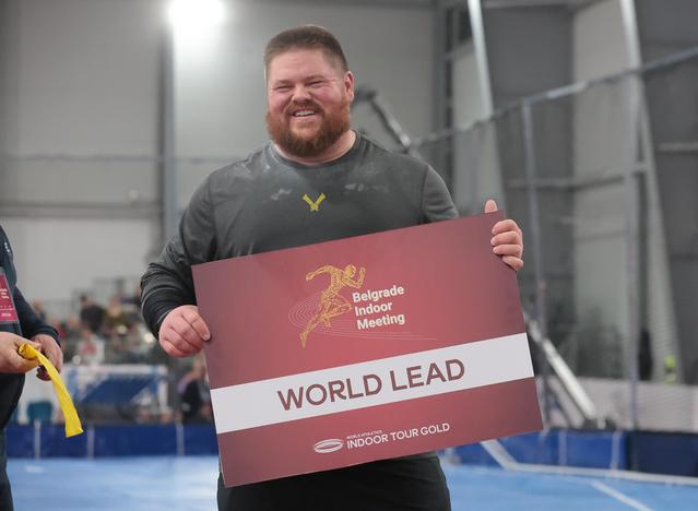 BELGRADE (SRB, Feb 11): Another European long jump battle and 12 meeting records (one equalled) highlighted the Belgrade Indoor Meeting (WIT Gold) in the sold out hall. Bozhidar Saraboyukov set a world lead of 845 MR/NR (823 – 826 – x – 829 – 845 – x) in the long jump and defeated Miltiadis Tentoglou (827), Carey McLeod (822) and Finland’s Kristian Pulli (808, best since 2021). Audrey Werro delivered another big solo in the 800m crowned by a world lead of 1:57.27 MR/NRi, Austria’s Caroline Bredlinger finished a distant second (2:01.80).