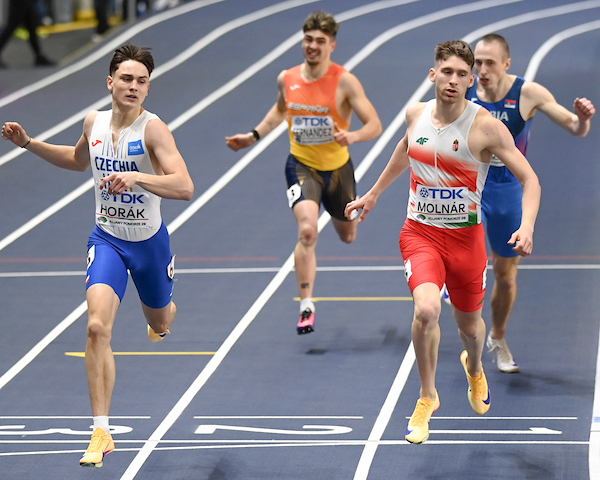 World Indoor Championships, 2026, WICH, Torun, Kujawy Pomorze, Markel FERNANDEZ, 400 Metres Men, ESP, Boško KIJANOVIĆ, 400 Metres Men, SRB, Attila MOLNÁR, 400 Metres Men, HUN, Tomáš HORÁK, 400 Metres Men, CZE, photos by World Athletics - Chase Jackson announced her retirement on live TV after winning the shot put. Don’t worry, it is just her retirement from Indoors, which she admitted she never liked because it cut into her winter break.
