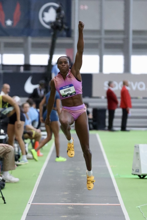 Jasmine Moore added another victory to her impressive weekend by claiming the women’s triple jump title. Her second attempt measured 13.89 meters and secured the win while Kayla Woods and Ryann Porter rounded out the podium.