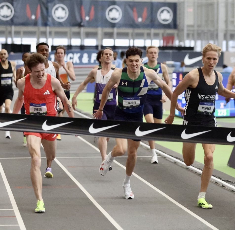 One of the most anticipated races of the afternoon was the women’s 1500m. Nikki Hiltz entered the race as the defending champion and once again showed why they remain one of the most consistent middle-distance runners in the country. The early pace was comfortable and resembled a controlled training run. Gracie Morris led the pack through the first half of the race while the rest of the field remained tightly grouped. As the laps passed, the tempo gradually increased, and the race began to take shape. Lindsey Butler moved to the front with one lap remaining, while Hiltz stayed perfectly positioned in the pack. When the final sprint began, Hiltz unleashed a powerful finishing kick that quickly separated them from the rest of the field. The move proved decisive as Hiltz crossed the finish line in 4:11.34 to claim a fourth consecutive national indoor title.