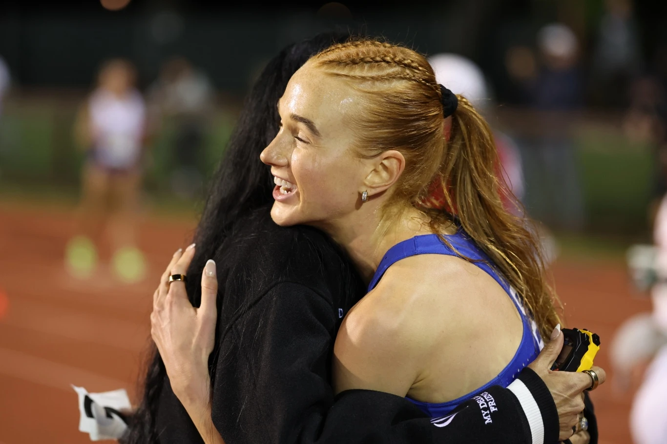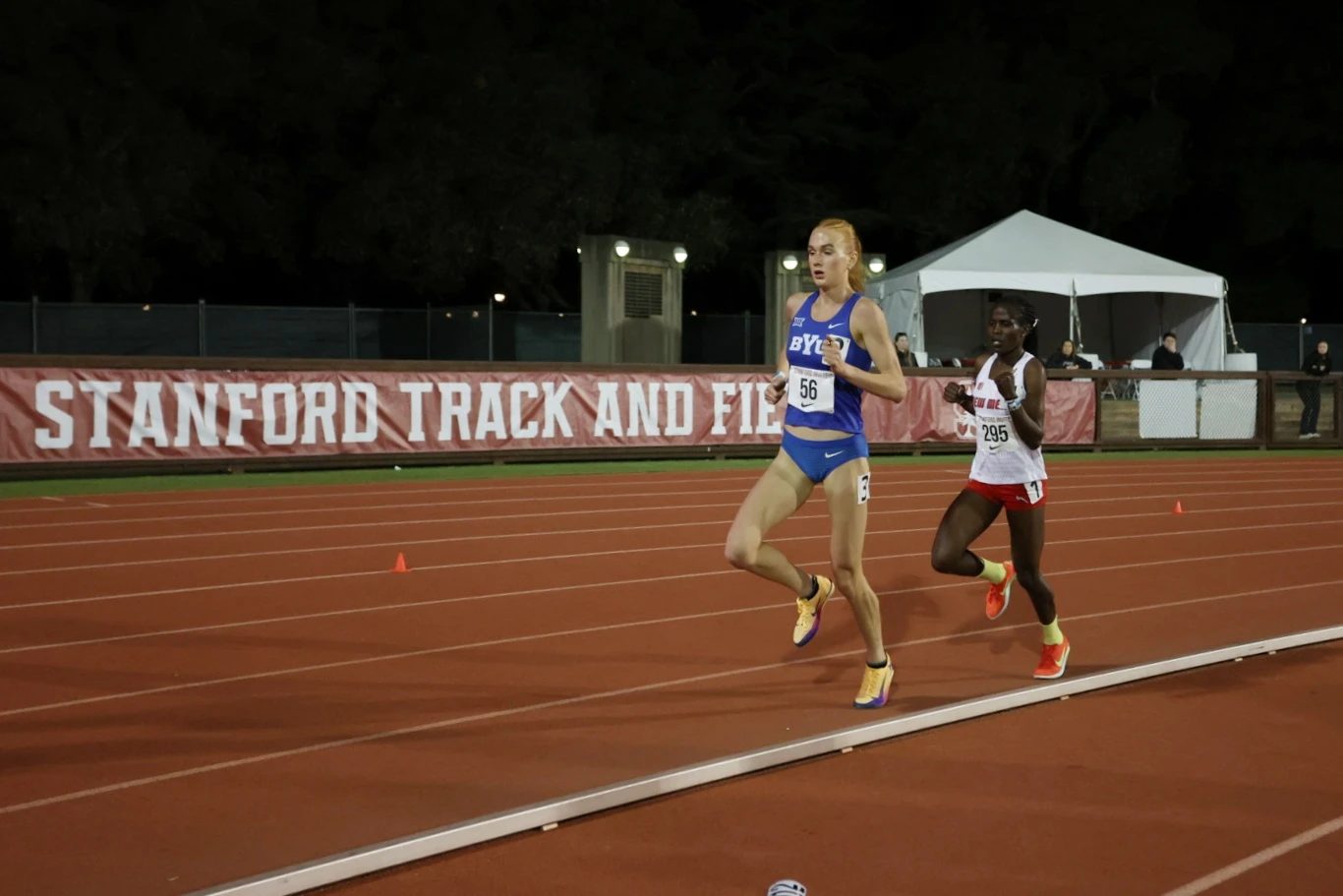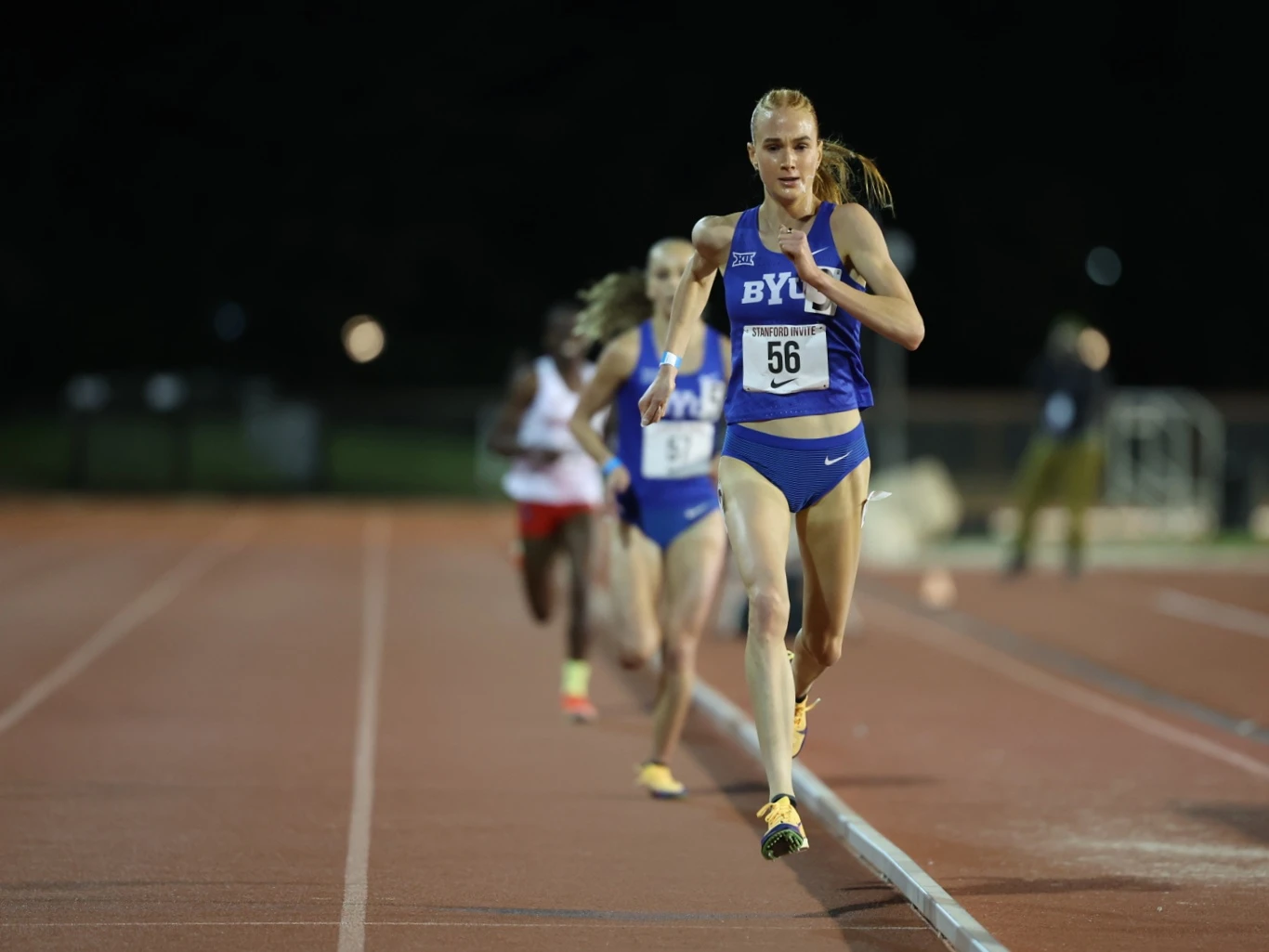 Jane Hedengren, BYU, en route to NCAA record run over 10,000m at 30:46.80 at Stanford Invitational, April 3, 2026, photo by BYU Track & Field