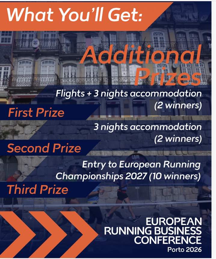 Plus, additional prizes include travel and accommodation in Porto, and entry to the European Running Championships 2027 in Belgrade.
